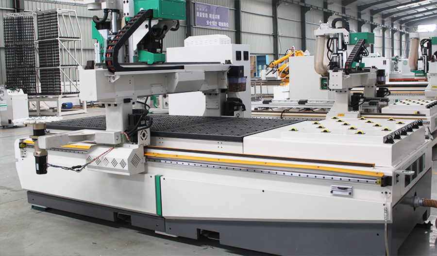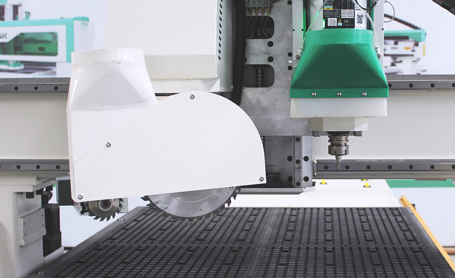 數(shù)控四邊鋸加工中心主要用于實木門規(guī)方,板式及實木家具生產(chǎn),全鋁家具下料,非金屬材料的鉆孔、雕刻、切割等工序。機器配備的旋轉(zhuǎn)鋸可進行任意角度切割,配備的自動換刀主軸搭配大容量刀庫能夠進行雕刻、銑型、鉆孔、切割下料等。