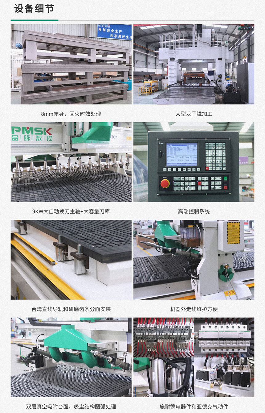 ◆9.0KW大功率主軸,適合高速切割下料,大容量直排刀庫(kù)節(jié)省換刀操作時(shí)間。