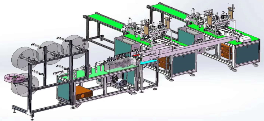 7.該生產(chǎn)線可配合口罩自動包裝線使用,實現(xiàn)從材料—成品—包裝的全程無人化運行。