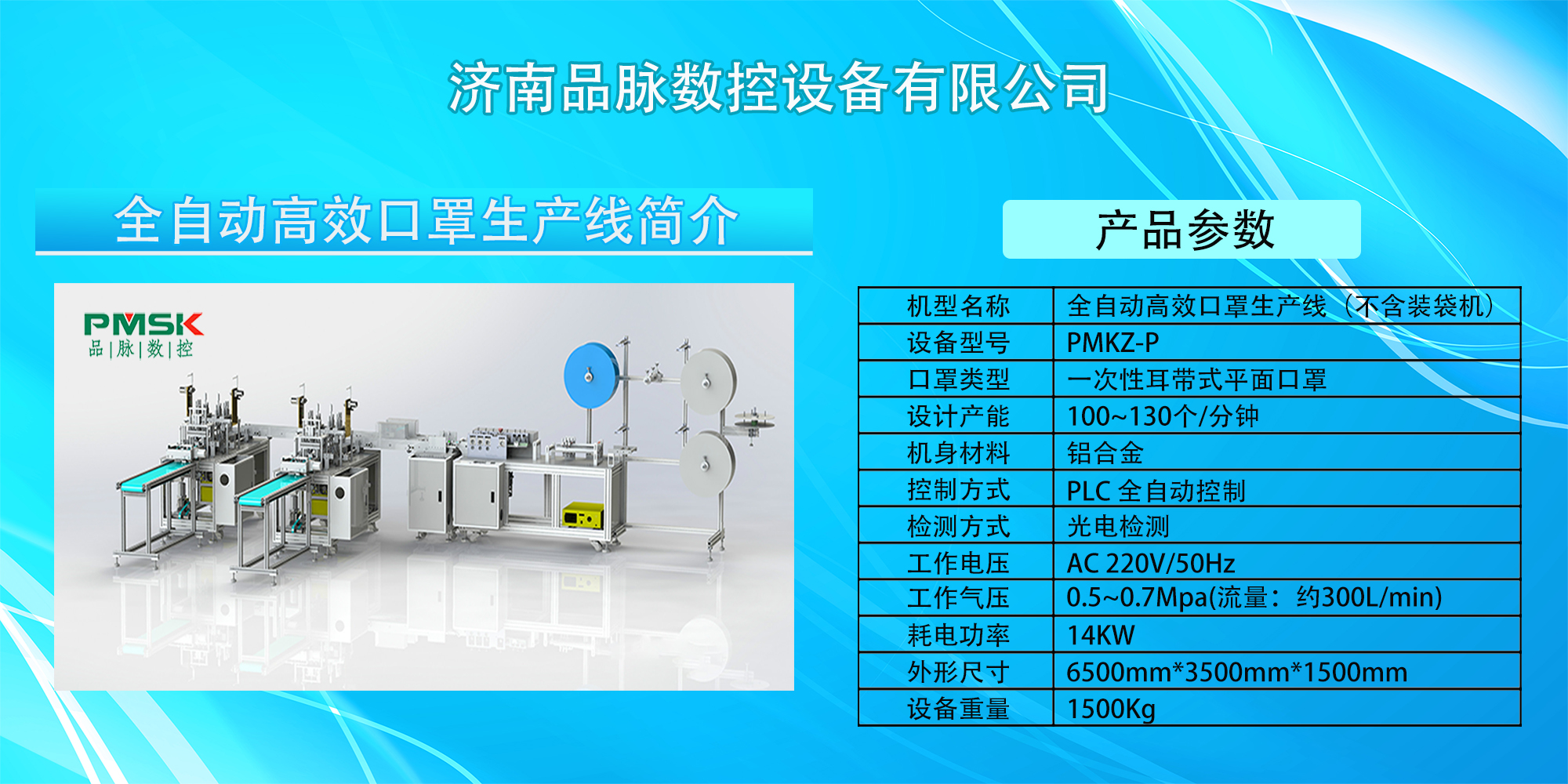 自新冠疫情發(fā)生以來,口罩成為國內(nèi)外疫情防控的緊缺物資??谡植粌H是疫情防控的有力保障,也是各行各業(yè)有序復工復產(chǎn)的基本條件。針對于國家口罩生產(chǎn)設(shè)備緊缺的緊張形勢,濟南品脈數(shù)控設(shè)備有限公司充分發(fā)揮自身智能裝備制造優(yōu)勢,集合全公司的研發(fā)力量,推出了全自動的口罩生產(chǎn)線,為抗疫物資生產(chǎn)提供高效的自動化解決方案,為抗擊疫情貢獻自身企業(yè)的力量!