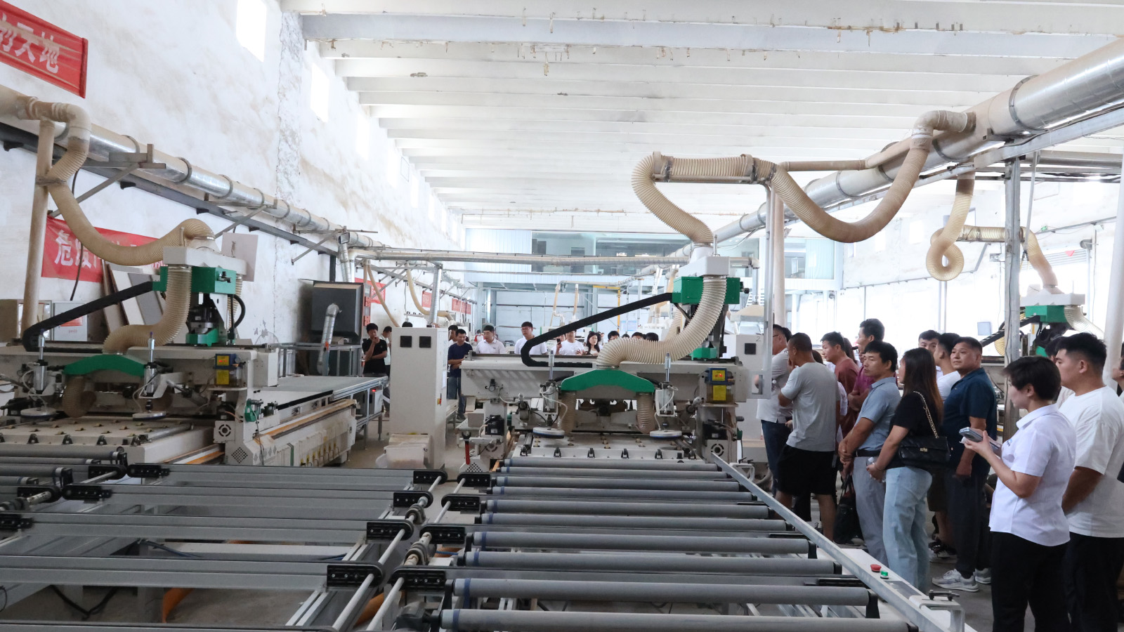 及自動(dòng)化技術(shù)的優(yōu)勢(shì),實(shí)地參觀了和益宅配及每屋美家兩家家具企業(yè)的生產(chǎn)現(xiàn)場(chǎng)。讓嘉賓們親身感受品脈數(shù)控高速鉆切中心及單元連線為板式家具廠降本增效,產(chǎn)能升級(jí)帶來(lái)的實(shí)際應(yīng)用效果。