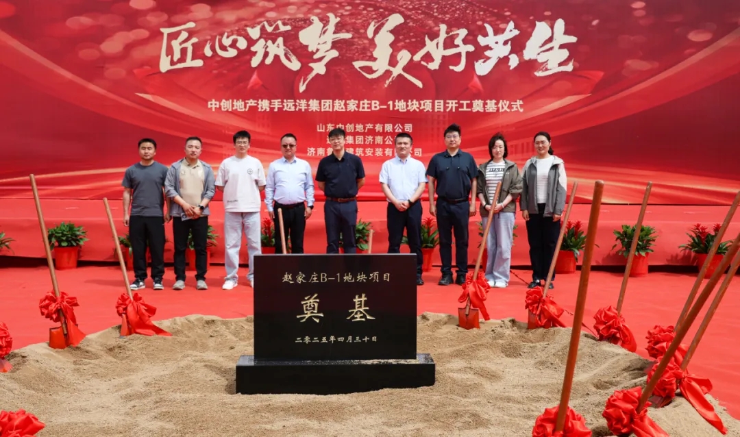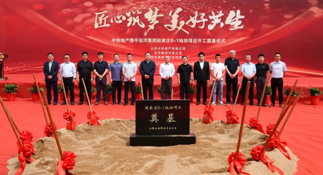2025年4月30日,由山東中創(chuàng)地產(chǎn)與遠(yuǎn)洋集團(tuán)聯(lián)合開發(fā)的趙家莊B-1地塊項(xiàng)目開工奠基儀式在濟(jì)南歷城區(qū)隆重舉行。濟(jì)南臨港經(jīng)濟(jì)開發(fā)區(qū)管委會(huì)副主任劉存新、歷城區(qū)鮑山街道辦事處黨工委書記付常勇、歷城區(qū)鮑山街道辦事處黨工委副書記,辦事處主任江巖等政府領(lǐng)導(dǎo),中品集團(tuán)董事長、山東中創(chuàng)地產(chǎn)有限公司董事長傅濤、山東中創(chuàng)地產(chǎn)有限公司總經(jīng)理潘德亮、遠(yuǎn)洋集團(tuán)環(huán)渤海公司副總經(jīng)理、濟(jì)南公司總經(jīng)理劉曉、遠(yuǎn)洋集團(tuán)濟(jì)南公司副總經(jīng)理吳春雷、濟(jì)南魯康建筑安裝有限公司董事長王文付、山東建大和盛建設(shè)項(xiàng)目管理有限公司總經(jīng)理劉興全、致谷建筑設(shè)計(jì)(山東)有限公司董事長丁欣、龍達(dá)恒信工程咨詢有限公司副總經(jīng)理付劍等企業(yè)界代表,以及各界嘉賓代表出席,共同見這一重要?dú)v史時(shí)刻。
