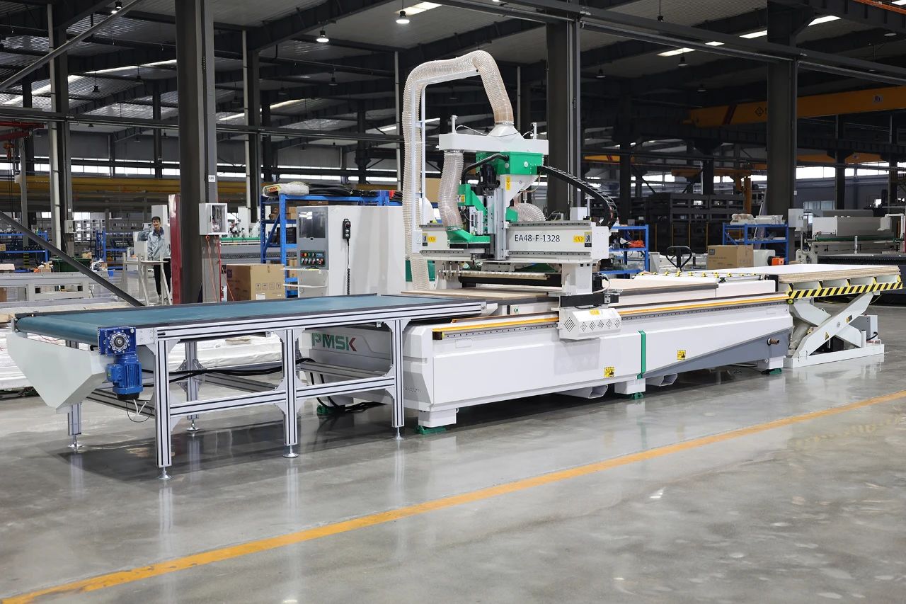 直排加工中心主要用于板式家具柜體以及門板的加工生產;可快速鉆孔、開槽與切割下料加工,可加工常見的板式家具二合一、三合一連接件安裝孔位,具備加工部分種類隱形連接件的功能;本機配備大功率換刀主軸及直排式刀庫,適合多元化復雜性產品加工或多樣加工,用途廣泛:可一次性下料、鉆孔、切割、倒邊、雕刻等;操作簡單,特別適合定制化需求生產加工。