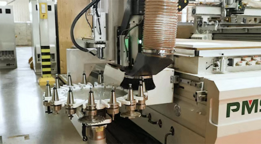 自動(dòng)換刀主軸,搭配16位圓盤(pán)伺服刀庫(kù)可完成各種高定工藝。
