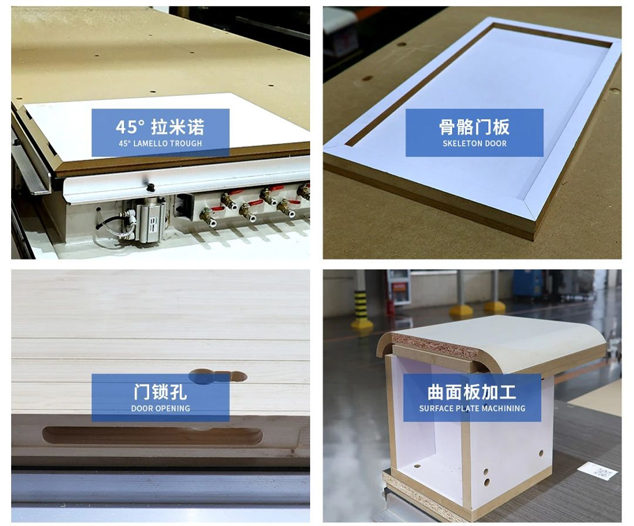 自主開(kāi)發(fā)設(shè)計(jì)的門(mén)墻柜CAM軟件,可滿(mǎn)足三合一孔、垂直孔、榫槽、側(cè)槽、拉直器、拉手、圓弧板、骨骼門(mén)等工藝,也可以自主設(shè)計(jì)拉手工藝,功能全面,實(shí)用性強(qiáng)。
